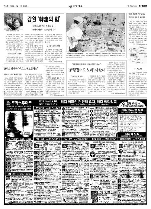 - [강원]강원 ‘韓流의 힘’… 2004년 외국인 방문객 40% 늘어