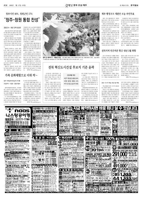 - [충북]"청주-청원 통합 찬성" 통합 탄력 받을 듯