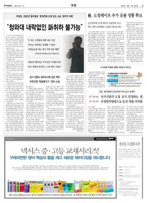 [사건/범죄]국정원, 2002년 동아일보 휴대전화 도청 보도 소송