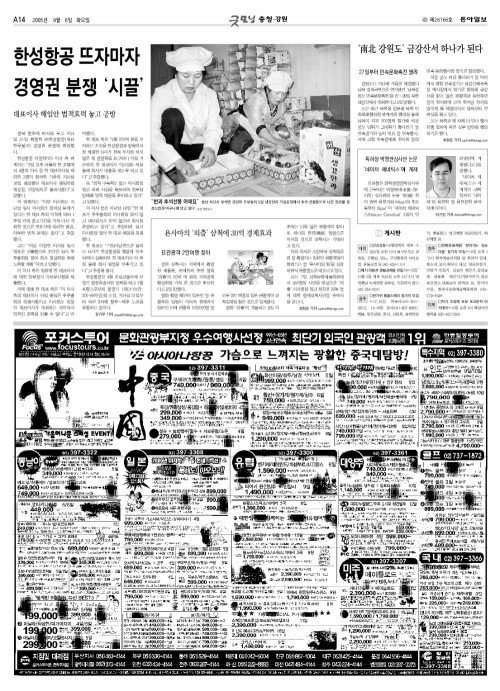 - [충북]한성항공 뜨자마자 경영권 분쟁 `시끌`