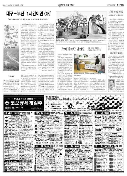 - [대구]대구~부산 `1시간이면 OK` 새고속도로 내년 개통