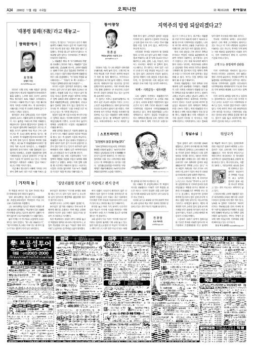 [동아광장]정종섭/지역주의 망령 되살리겠다고?
