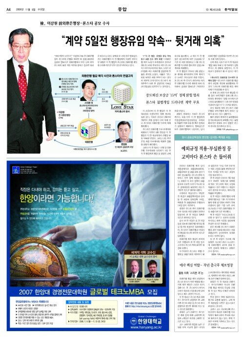 檢, 이강원 前외환은행장-론스타 공모 수사 "...뒷거래 의혹"