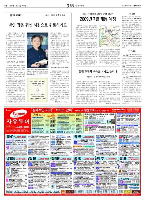 - [인천]송도 지하철1호선 연장선 2009년 7월 개통 예정