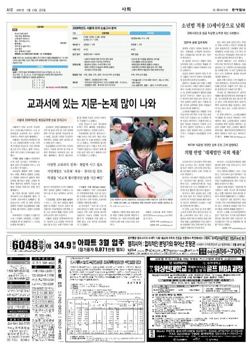 - [인천/경기]여론광장/떨고 있는 2008 입시생들이여…