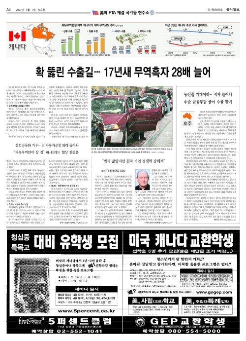 [美-캐나다 FTA]확 뚫린 수출길…17년새 무역흑자 28배 ↑