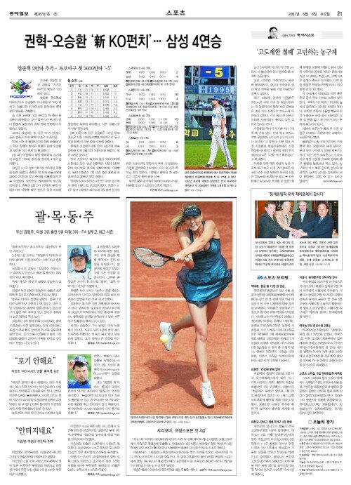 A섹션 21면 스포츠