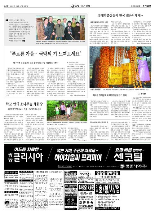 - [대구/경북]“푸르른 가을… 국악의 기 느껴보세요”