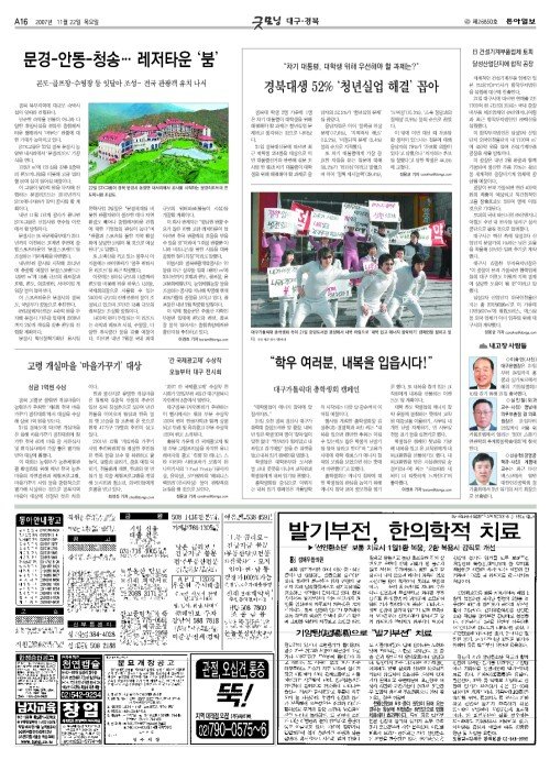 - [대구/경북]문경-안동-청송… 레저타운 ‘붐’