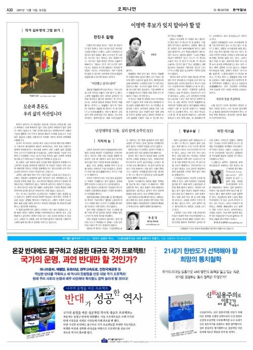 [전진우 칼럼]이명박 후보가 잊지 말아야 할 말
