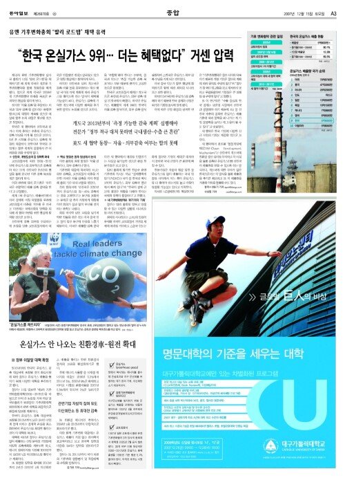 온실가스 감축 대상에 한국 2013년 편입될듯