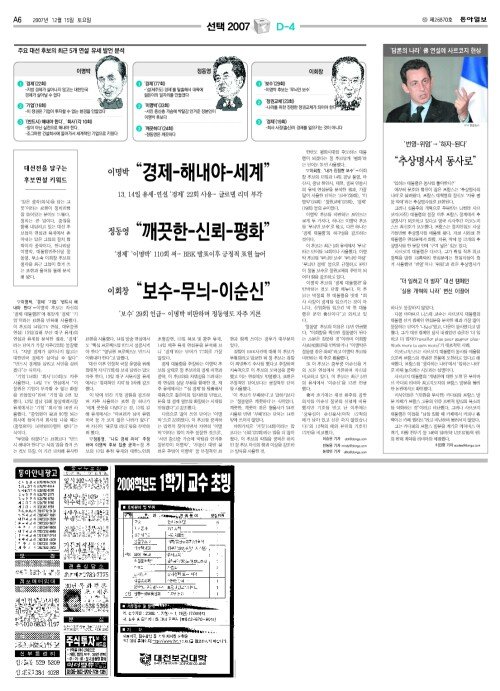 [17대 대선/선택 2007 대선 D-4]대선전을 달구는 후보연설 키워드