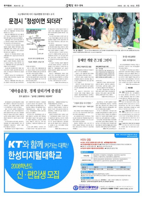 - [대구/경북]“새마을운동, 경제 살리기에 중점을”