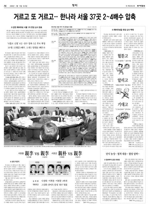 거르고 또 거르고… 한나라 서울 37곳 2~4배수 압축