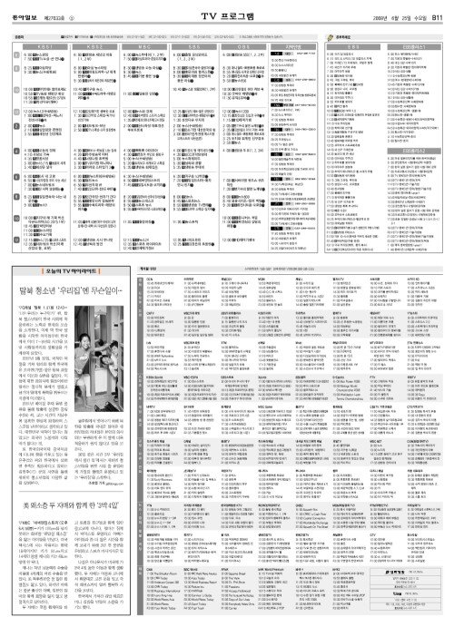 B섹션 11면 TV프로
