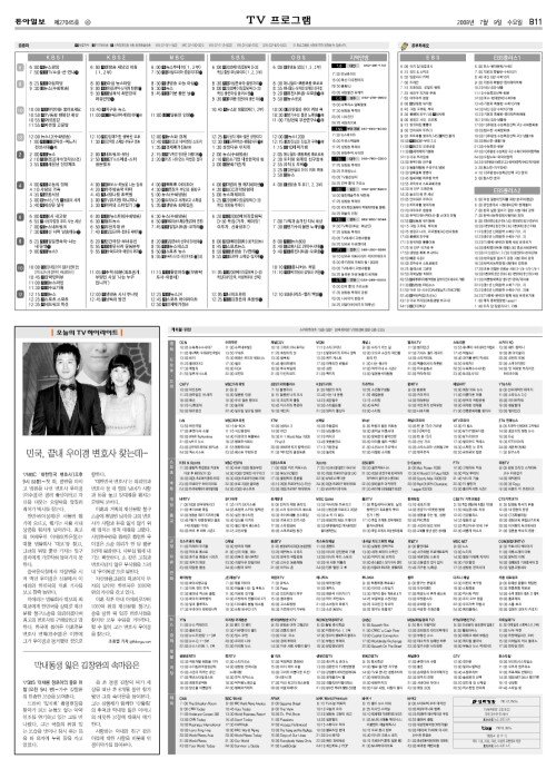 B섹션 11면 TV프로
