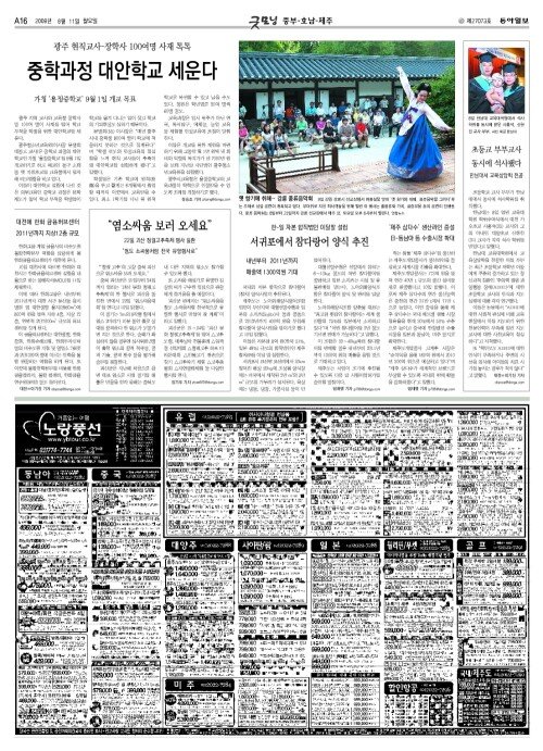 - [광주/전남]광주 현직교사-장학사 중학과정 대안학교 세운다