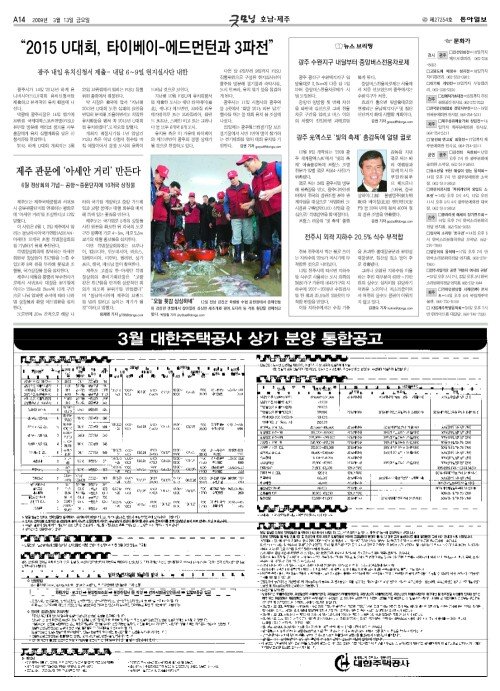 - [광주/전남]“2015 U대회, 타이베이-에드먼턴과 3파전”
