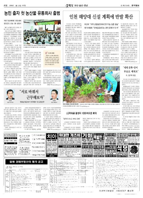 - [부산/경남]농민 출자 첫 농산물 유통회사 출범