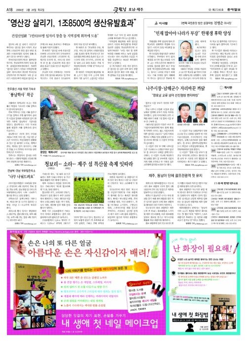 - [광주/전남]“영산강 살리기, 1조8500억 생산유발효과”