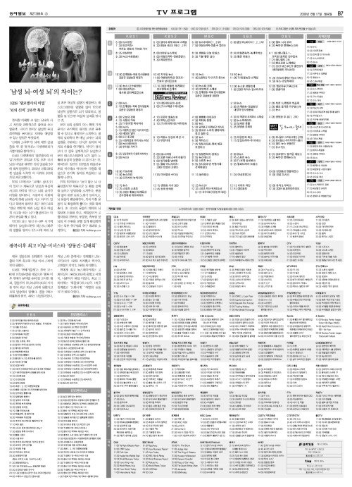 B섹션 7면 TV프로