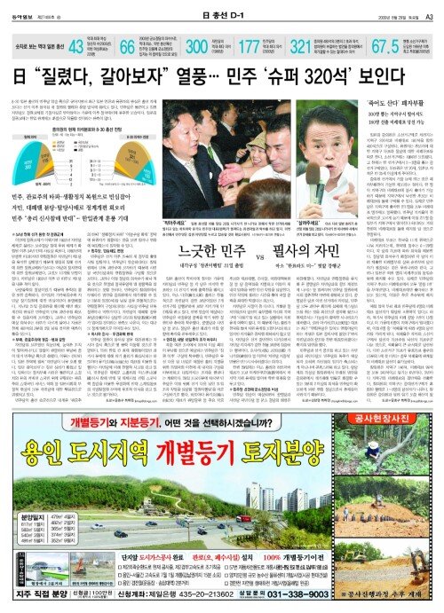 日 “질렸다, 갈아보자” 열풍… 민주 ‘슈퍼 320석’ 보인다
