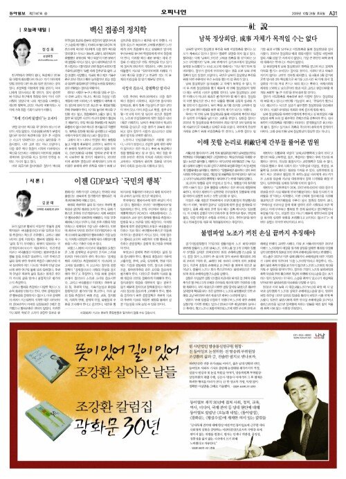 [시론/김윤태]이젠 GDP보다 ‘국민의 행복’