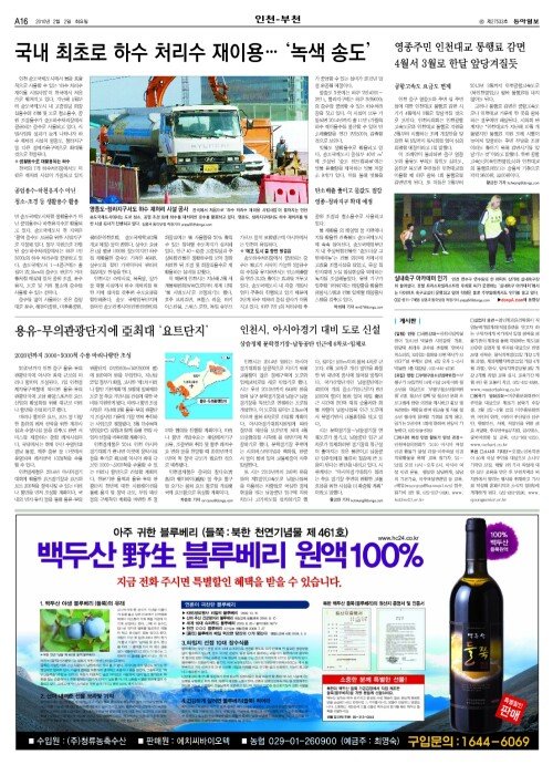 - [인천/경기]국내 최초로 하수 처리수 재이용… ‘녹색 송도’