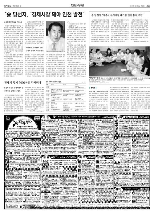 - [인천/경기]“송 당선자, ‘경제시장’돼야 인천 발전”