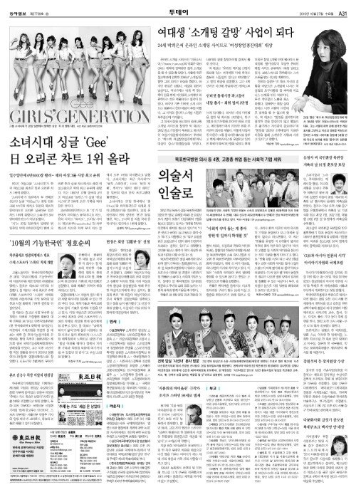 - 소녀시대 싱글 ‘Gee’ 日오리콘 차트 1위 올라