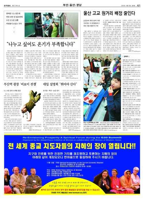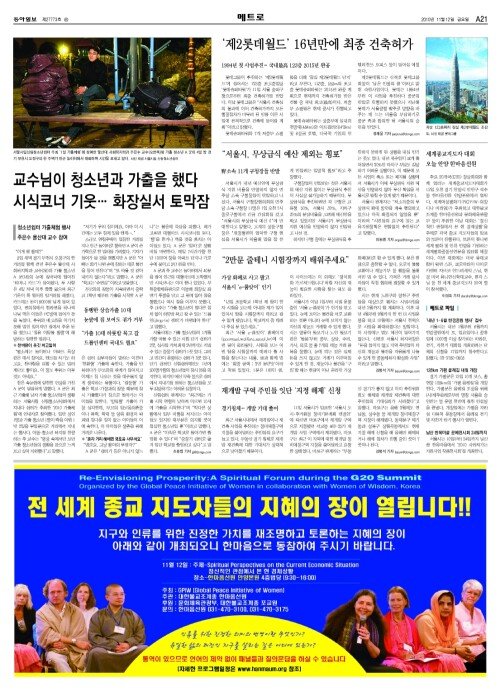 - [수도권]세계종교지도자 대회 오늘 안양 한마음선원