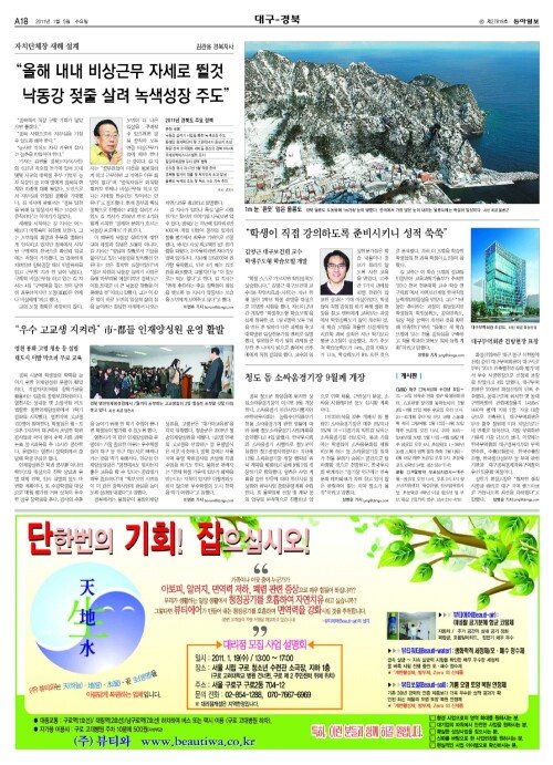 - [대구/경북]김관용 “올해 내내 비상근무 자세로 뛸것 낙동강 젖줄 살려 녹색성장 주도”