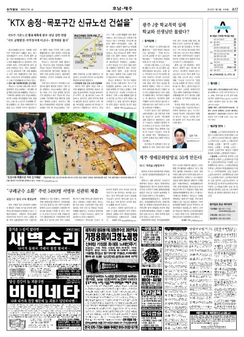 - [광주/전남]“KTX 송정~목포구간 신규노선 건설을”
