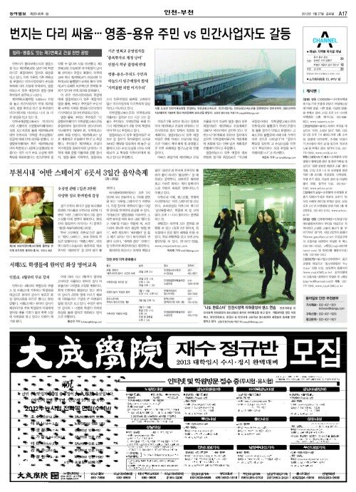- [인천/경기]번지는 다리 싸움… 영종-용유 주민 vs 민간사업자도 갈등