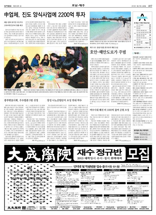 - [광주/전남]中업체, 진도 양식사업에 2200억 투자