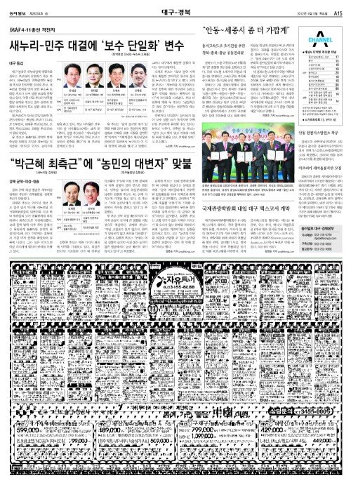 - [4·11총선 격전지]경북 군위-의성-청송, “박근혜 최측근”에 “농민의 대변자” 맞불