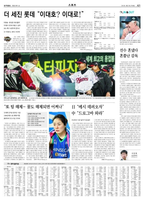 A섹션 21면 스포츠