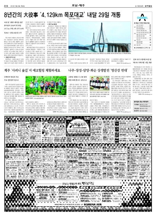 - [광주/전남]8년간의 大役事 ‘4.129km 목포대교’ 내달 29일 개통