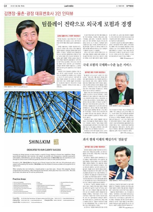 - [Lawfirm&Biz]김앤장 법률사무소, 의사결정 자율화로 전문성 다져 세계 30대 로펌선정