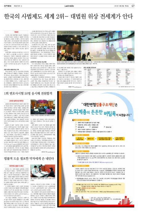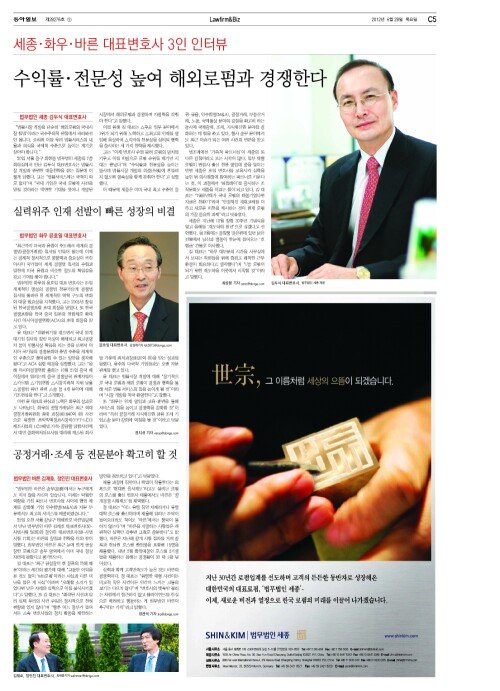 - [Lawfirm&Biz]법무법인 세종, ‘증권·금융 분야 1위’ 사회 소외계층에도 꾸준한 무료법률지원