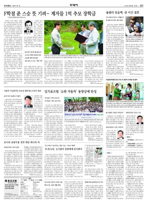 - [단독]F학점 준 스승 뜻 기려… 제자들 1억 추모 장학금