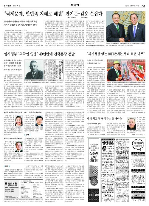 - “국제문제, 한민족 지혜로 해결” 반기문-김용 손잡다