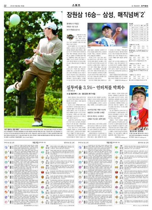 장원삼 16승… 삼성, 매직넘버 ‘2’