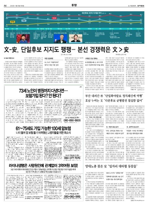 文-安, 단일후보 지지도 팽팽 본선 경쟁력은 文>安