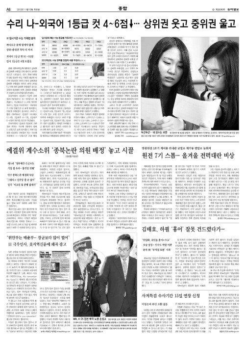 수리 나-외국어 1등급 컷 4∼6점 ↓… 상위권 웃고 중위권 울고