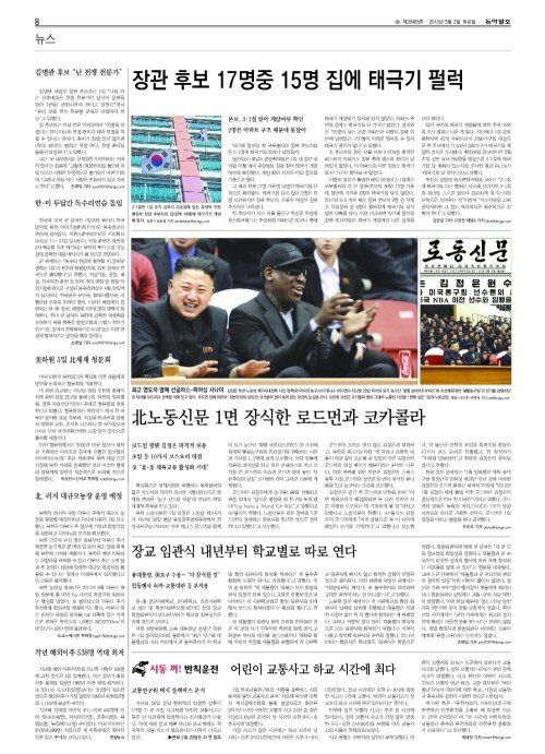 北노동신문 1면 장식한 로드먼과 코카콜라