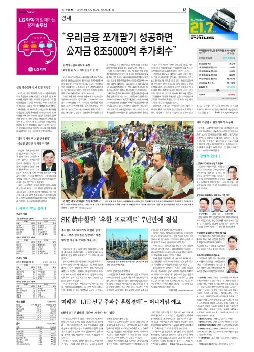 - “우리금융 쪼개팔기 성공하면 公자금 8조5000억 추가회수”