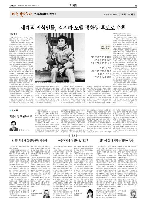 세계적 지식인들, 김지하 노벨 평화상 후보로 추천
