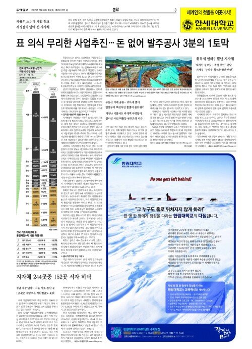 표 의식 무리한 사업추진… 돈 없어 발주공사 3분의 1토막