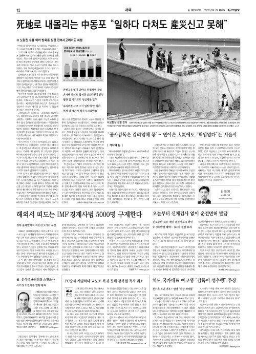 死地로 내몰리는 中동포 “일하다 다쳐도 産災신고 못해”